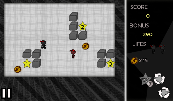 You will become Ninja, whose goal is to collect all the stars he has lost. Along the way he will have to face other ninjas, closed doors, mechanisms, pools, ...