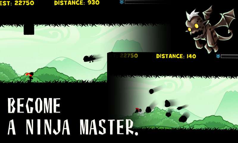 As a Ninja you need jump up and down to avoid obstacles and collect the stars to increase your power. Quickly jump over and roll through obstacles and run as far as you can!