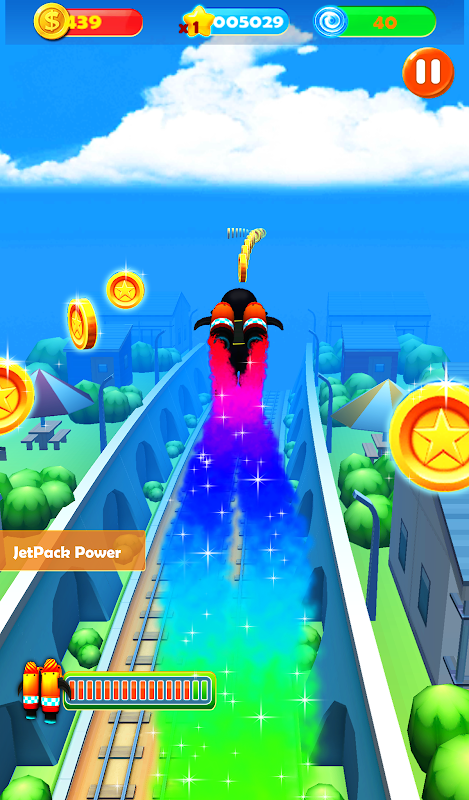 + Rocket: a jetpack to fly on top through the skies, collect many coins without a hitch