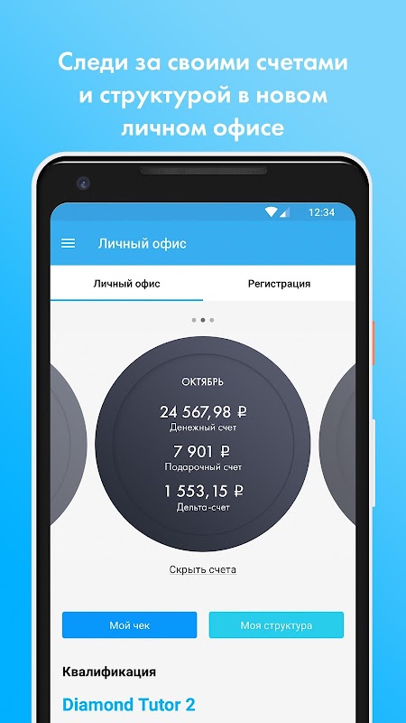 Personal office will allow you to monitor your accounts, volumes and statistics of the structure, register managers and clients, as well as use referral links.