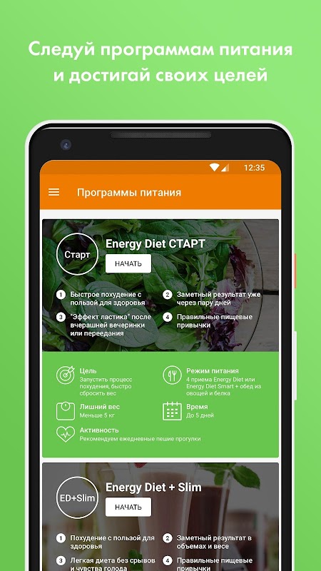 Food programs with NL products are now available in our application. Set a goal, choose a program that is right for you, follow the recommendations and the result will not take long!