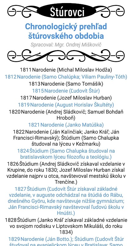 Applicatie gericht op de geschiedenis van Slowakije - het tijdperk van Štúrovo.