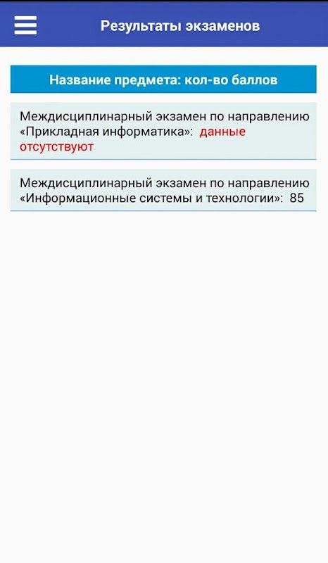 4) о результатах вступительных экзаменов и баллах ЕГЭ по каждому предмету, который требуется для поступления на выбранные направления подготовки;