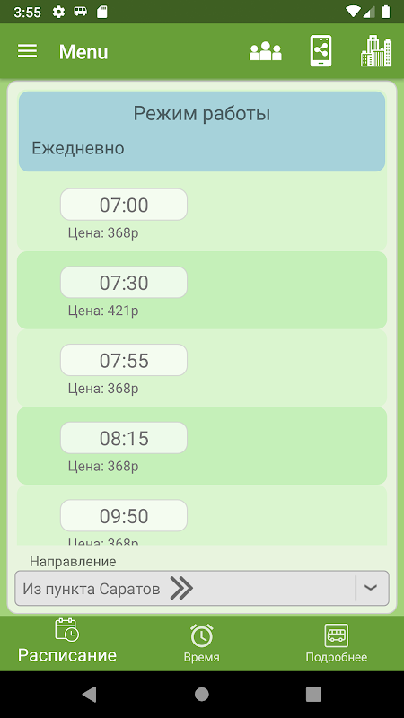 Schema van voorstedelijke bussen zonder kaarten en offline voor de stad Saratov.