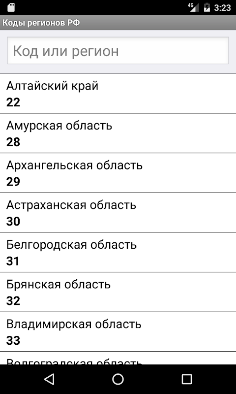 ✓ Прозрачный поиск как по названию региона, так и по его коду