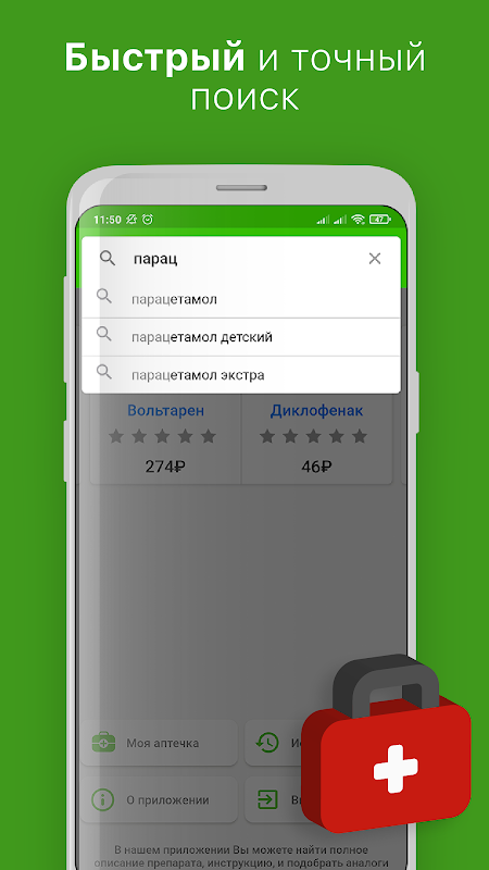Een geneesmiddelengids met de mogelijkheid om te zoeken naar goedkope analogen van dure medicijnen. Selectie van generieke medicijnen met een vergelijkbaar actief ingrediënt en aanduiding van de huidige prijs. De gebruiker kan nu kiezen welk medicijn hij wil kopen en hoeveel hij wil uitgeven.