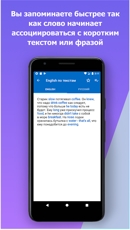 Dit lijkt erg op parallelle teksten, maar is eenvoudiger en effectiever, omdat Engelse woorden aan de Russische tekst worden toegevoegd en de vertaling vaak wordt begrepen.