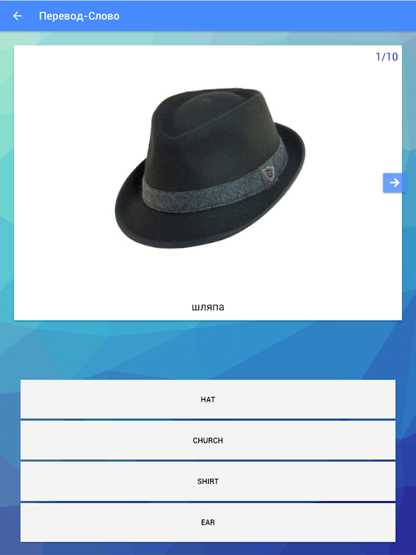 2. Je ziet een Russisch woord en je moet het juiste Engelse woord kiezen;