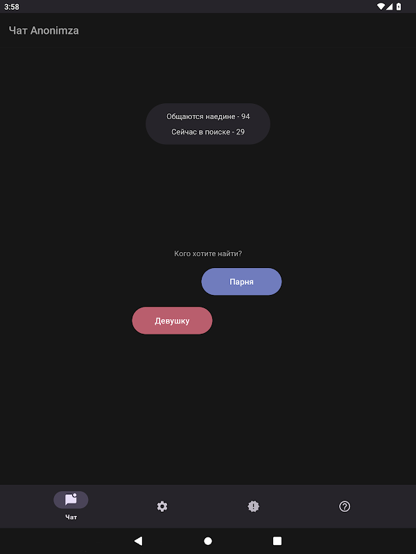 Anonieme chat is alleen beschikbaar als applicatie voor Android-apparaten. Geen pc-clients.