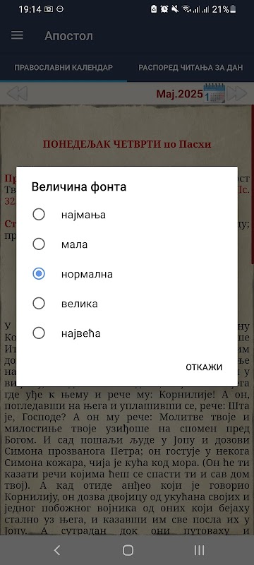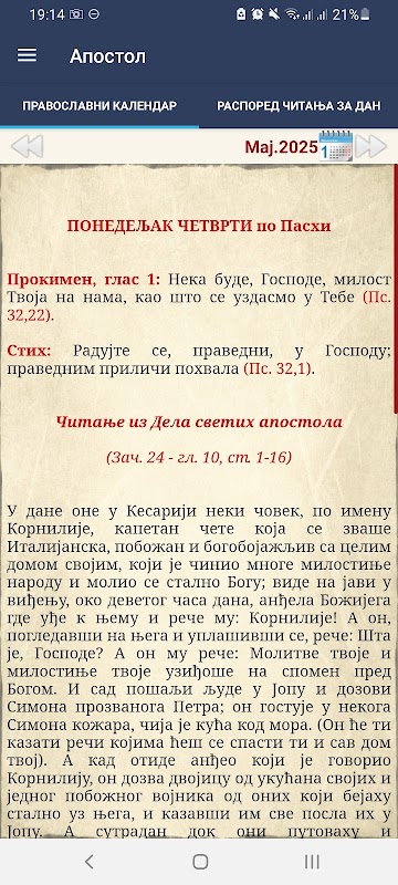 Het programma bevat ook de orthodoxe kerkkalender met de vastendata gedurende het hele jaar en een apostel voor elke dag van het jaar. De kalender van de Orthodoxe Kerk past automatisch de verplaatsbare feestdagen en vastendagen voor elk jaar aan, afhankelijk van Pasen.