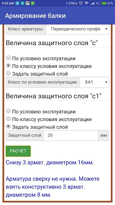 Как результат калькулятор железобетонной балки вам выдаст количество и диаметр подобранной арматуры.