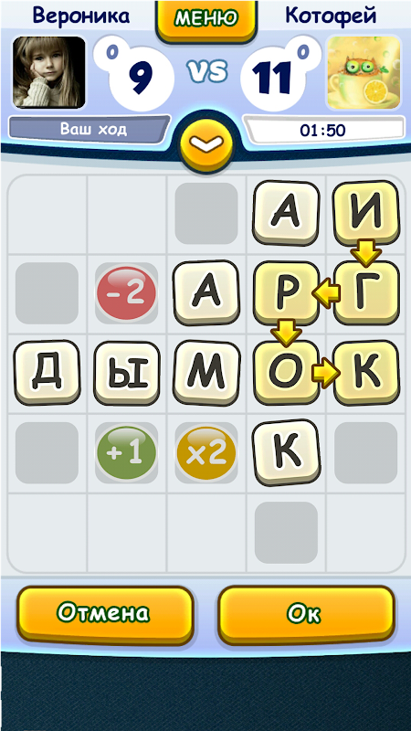 De "vrienden Balda" je kunt alleen spelen tegen de computer, samen met een vriend op de ene telefoon en met een groot aantal spelers van over de hele wereld via het internet. Wat game mode u ook kiest, wij garanderen u een leuke en interessante tijd besteden.