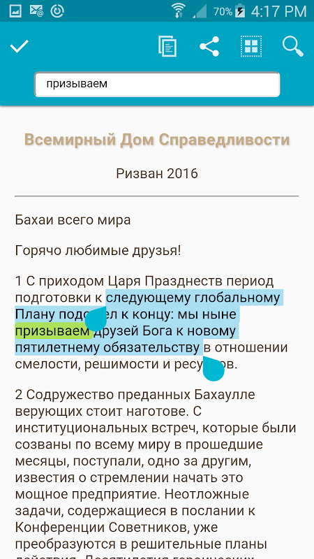 Это приложение было разработано, чтобы облегчить изучение посланий Всемирного Дома Справедливости.