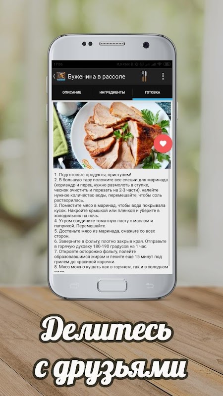 Наш редакторский коллектив подготовил только те рецепты, которые достаточно просто повторить и насладиться ими. Коллекция включает в себя огромное количество провереных пошаговых рекомендаций по кулинарии: Домляма по-узбекски, Завтрак в чизбургере, Говядина, запеченная куском. Все рецепты блюд подробно разобраны снабжены фотопримерами, некоторые даже различными вариантами подачи. Наш модератор постоянно работает над качеством и пользой нашего сборника поэтому ваши оценки и комментарии крайне важны для повышения эргономичности приложения. Все описания готовки и блюд представлены на русском языке. Своими силами мы постоянно тестируем рецепты из разных источников, чтобы добавлять в наш каталог только проверенные и достойные внимания рецепты. Также мы всегда в контакте с нашими пользователями и различными шефами, которые присылают нам свои советы и рекомендации.