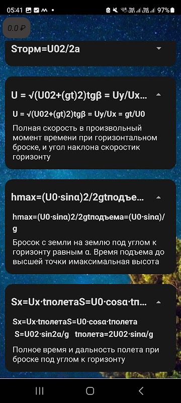 Educatieve applicatie met interessante feiten uit de wereld van de natuurkunde, formules, wetten