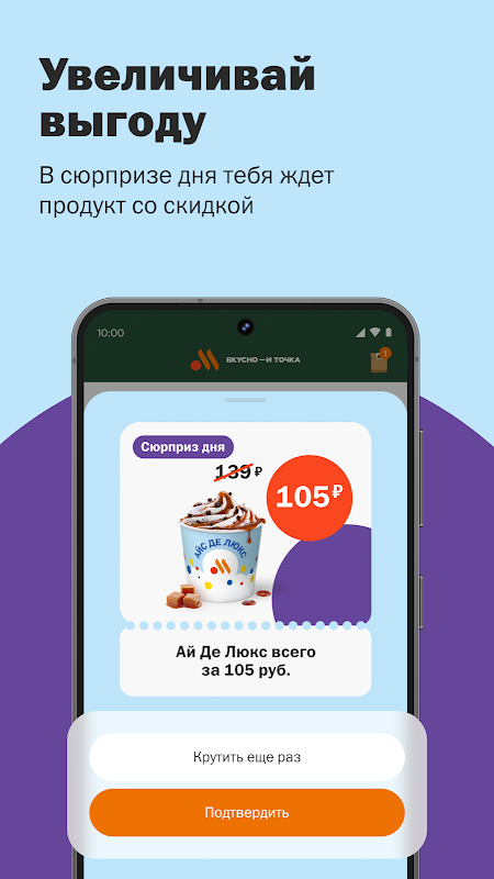 Wil je jezelf opfrissen met de hits van Vkusno-i-tochka zonder je huis of kantoor te verlaten? Plaats uw bestelling in de app: wij bezorgen uw bestelling vanuit het dichtstbijzijnde "Vkusno - periode" direct bij u aan de deur!