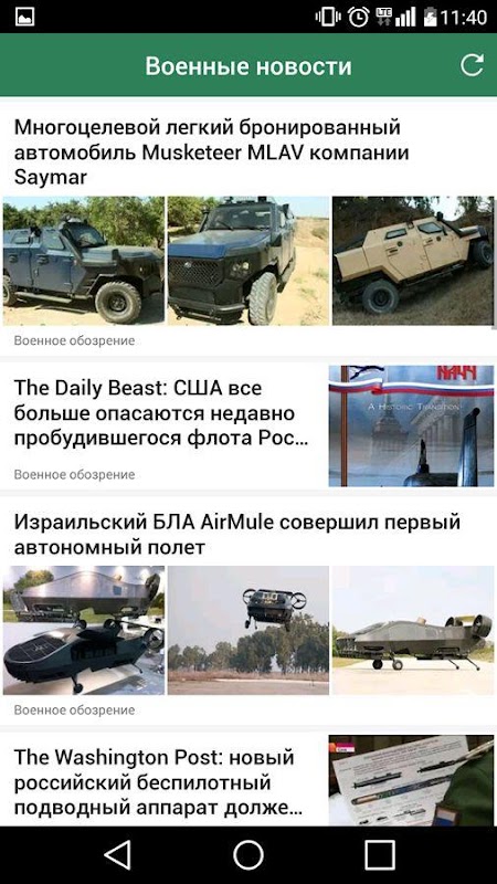 Военные новости – это ведущее российской медиа, которое использует информацию из различных источников, например: социальных сетей, новостных агентств (AP, РИА Новости, Reuters, AFP, UPI, ТАSS, DPA) и Военный форум(topwar, war.newsru, warday, armsofwar, voen, Военные материалы, dokwar, Интерфакс, InoPressa, Оружие России, 24smi, desantura, airfoece, Центр, Свободная Пресса ). Пользователи приложения могут читать последние мировые новости онлайн и любые другие материалы бесплатно.