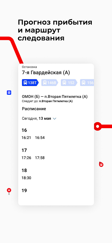 - ontdek het schema en de voorspelling van aankomst op de gewenste halte;