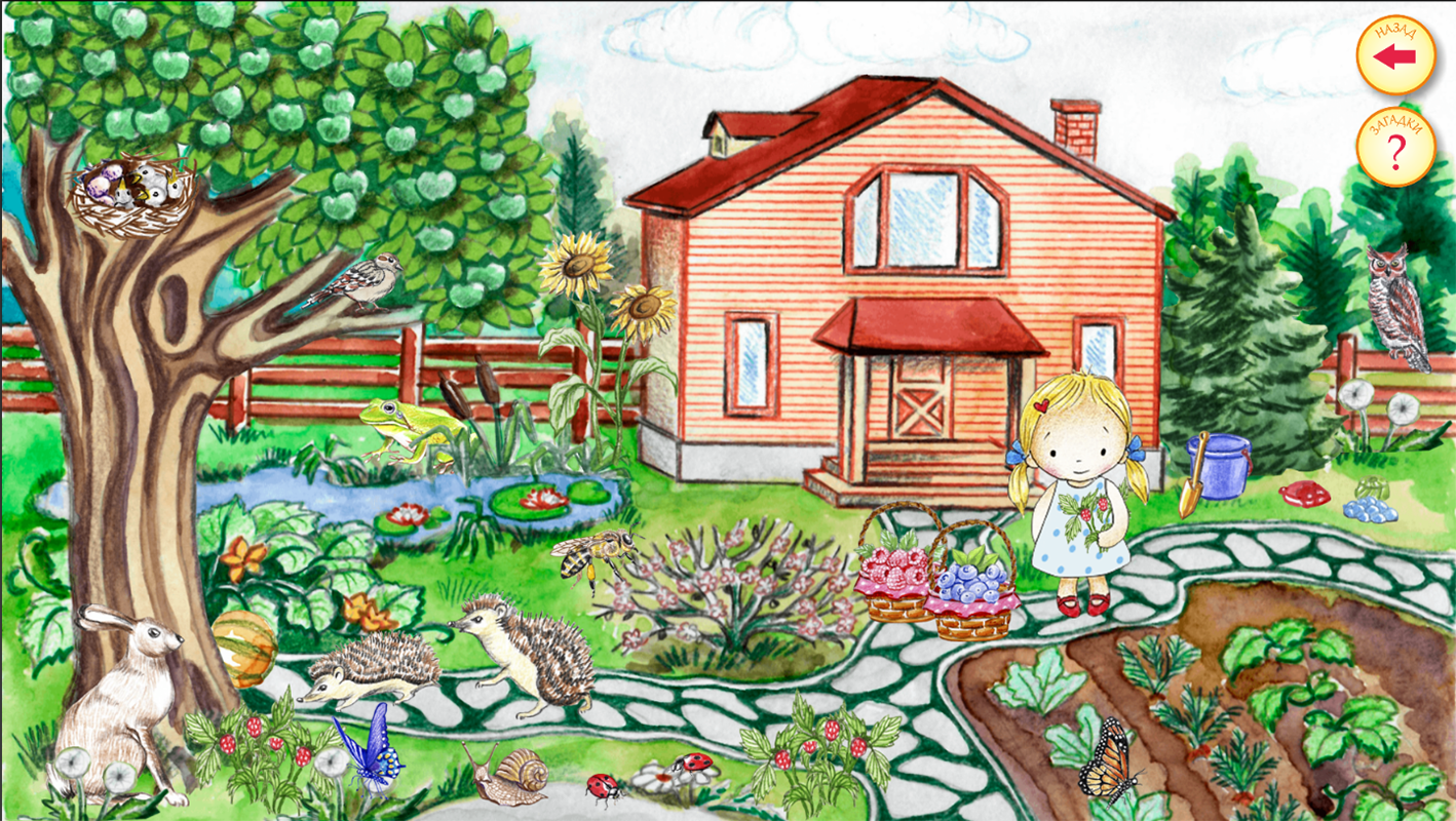Een fascinerende zoektocht naar dieren en insecten, planten en natuurverschijnselen in de afbeeldingen van de tuin per seizoen. Visueel vormt kennis over seizoensveranderingen in de dieren- en plantenwereld. De applicatie fascineert vanaf de eerste seconden, het kind zal er steeds weer naar terugkeren. Ontwikkelt doorzettingsvermogen, aandacht en observatie.