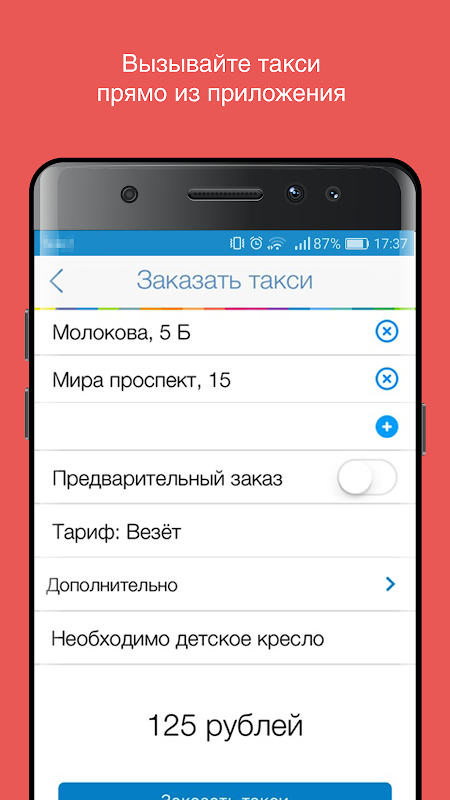 * Вызов такси не выходя из приложения.