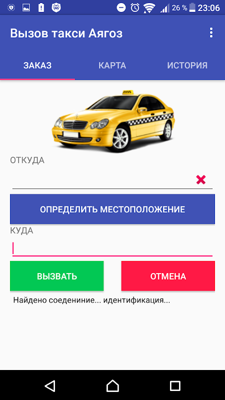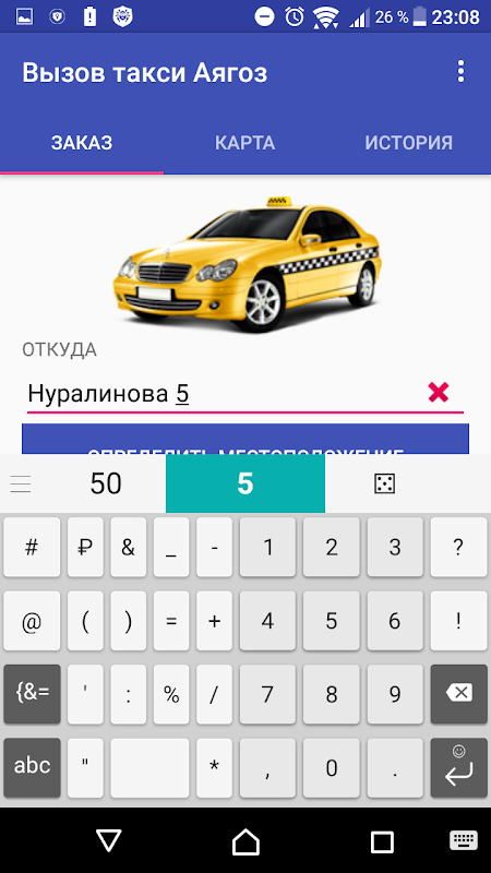 De applicatie kan een smartphone om een taxi de stad Ayagoz noemen