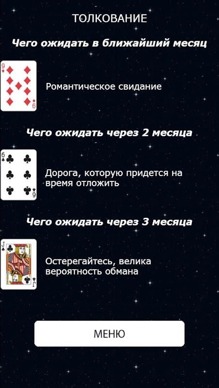 De resultaten in onze applicatie zijn zo waarheidsgetrouw mogelijk en dicht bij echte waarzeggerij op speelkaarten.