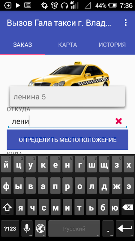Данное приложение несет основной функционал для вызова такси и отображения состояния заказа, который клиент оформил в службе такси города Владивосток