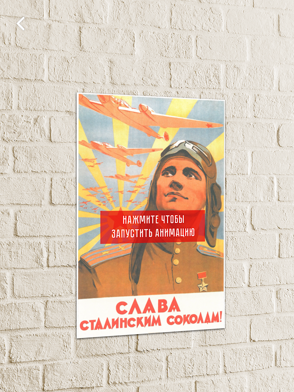 (3) Richt de camera van uw apparaat op de posters van de tentoonstelling Heroes of Victory, gemarkeerd met een speciaal "AR"-pictogram. Als je een elektronische versie van de poster gebruikt, richt dan de camera van de gadget op het scherm van het apparaat waarop de poster wordt weergegeven. Vermijd verblinding!