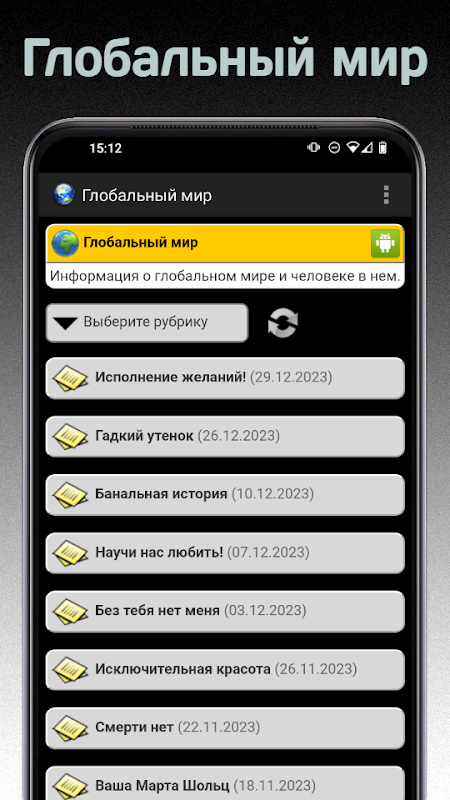 Alle meningen, artikelen en publicaties zijn geclassificeerd volgens de volgende rubrieken: leeszaal, overzicht van gebeurtenissen, integrale wereld, samenleving, crisis, wetenschap, leven, psychologie, gezin en onderwijs, mannen en vrouwen, niet-politiek, commentaren.