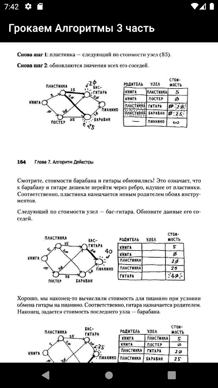 В книге приводится множество примеров. Моя цель — не вывалить на читателя кучу невразумительных формул, а упростить наглядное представление этих концепций. Я также считаю, что мы лучше всего учимся тогда, когда можем вспомнить что-то уже известное, а примеры помогают освежить память. Так, когда вы вспоминаете, чем массивы отличаются от связанных списков (глава 2), просто вспомните, как ищете места для компании в кинотеатре. Наверное, вы уже поняли, что я сторонник визуального стиля обучения, — в книге полно рисунков.