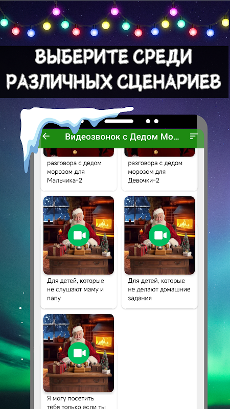 Santa Claus Call in Russian is een unieke applicatie waarmee je een gesprek of videogesprek met de Kerstman zelf in het Russisch kunt organiseren! Met onze applicatie kunt u uw kinderen plezieren met een ongewoon telefoontje van de Kerstman, rechtstreeks op uw mobiele apparaat.