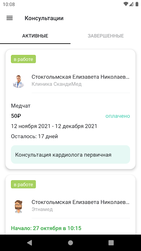 Чат с врачом. Можно писать сообщения, прикладывать файлы с телефона и документы из медкарты, сделать аудио- или видео звонок. Платформа надежно защищена, Ваши личные данные не попадут в сеть и третьим лицам.