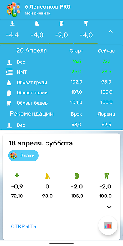Het uiterlijk van de applicatie was het gevolg van het succes van veel mensen die Hem voorgesteld doelen hebben bereikt. En een heleboel mensen afvallen met plezier en snel effect!
