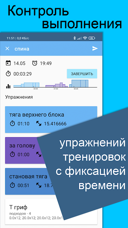 In onze toepassing is er niets overbodig, alleen het gewicht benaderingen en stopwatch. Niets zal je afleiden van de belangrijke zaken.