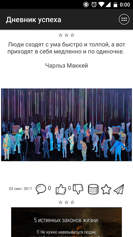 Понравившиеся записи можно комментировать и оценивать. Все понравившиеся картинки можно сохранять в галерее устройства в папке приложения. Ты можешь делиться записями с друзьями через социальные сети, а так же другие установленные на устройстве приложения. Ну и конечно, ты можешь оставлять лайки и сохранять записи в избранное.