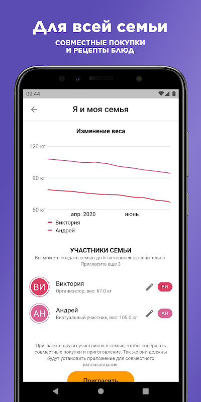• U kunt de gegevens van alle leden van uw gezin invoeren en de applicatie berekent de portiegroottes en de benodigde hoeveelheid voedsel. Dit maakt het gemakkelijker om te koken, boodschappen te doen en, belangrijker nog, je gezin krijgt hetzelfde hoogwaardige dieet als jij.