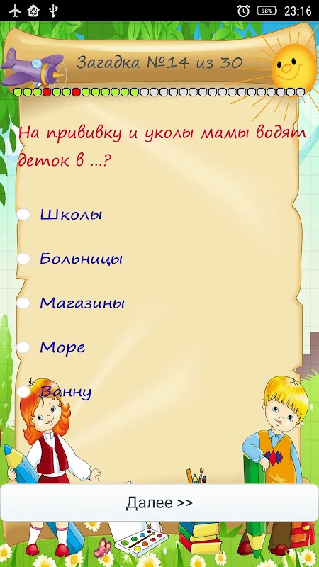 De applicatie bevat raadsels voor kinderen en schoolkinderen over verschillende onderwerpen.