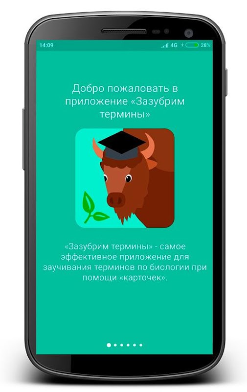 De applicatie helpt om biologietermen voor het examen te onthouden met behulp van kaarten