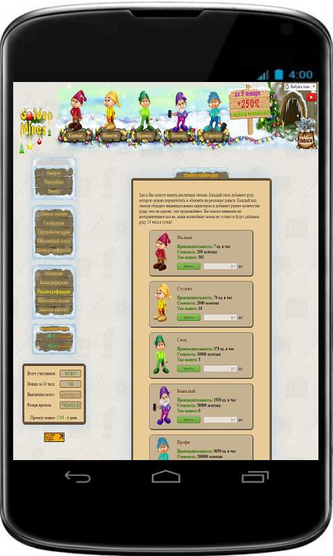 Golden Mines: игра-ферма с выводом реальных денег. Здесь можно заработать реальные деньги, играя и получая, многочисленные бонусы.