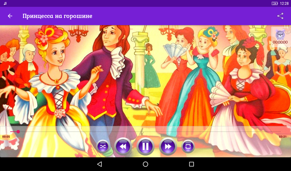 De applicatie vereist geen internet en u kunt op de achtergrond naar sprookjes luisteren.