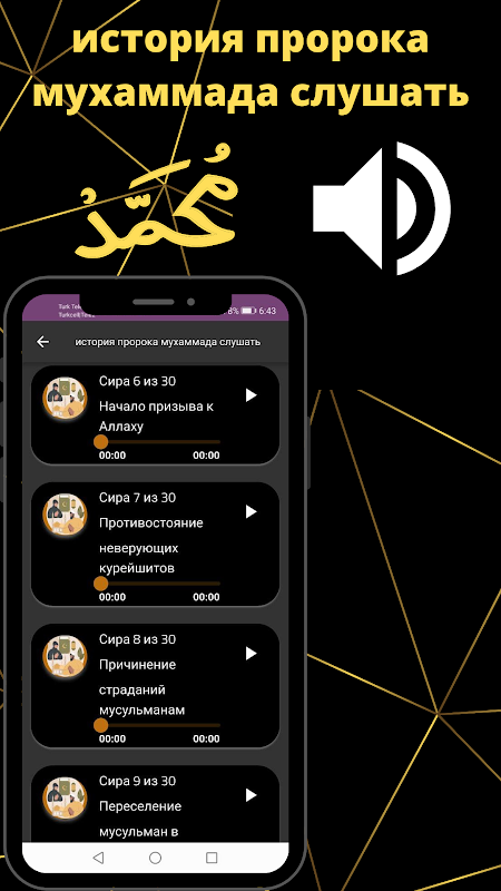 Это приложение представляет вам историю Пророка Мухаммеда аудио (мир ему и благословение) на русском языке в высоком качестве. Красивое повествование о жизни пророка Мухаммеда (мир ему и благословение).