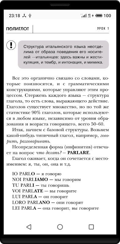 De oorspronkelijke taalcursus Italiaans is ontwikkeld op basis van het materiaal van het "Polyglot"-programma