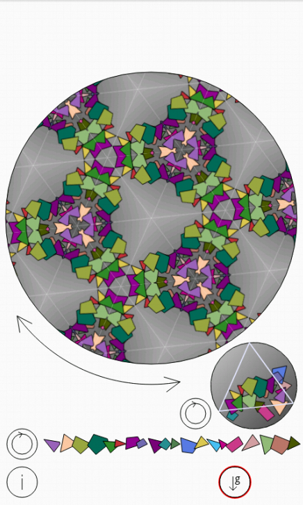 Не могу сказать, что приложение получилось на 100% удачным (так и не удалось добиться идеально плавной картинки, да и доделать еще много чего можно), но совершенно точно оно вышло очень даже познавательным: показаны все составляющие калейдоскопа и наглядно демонстрируется как из нескольких цветных «стекляшек» и трех зеркальных полосок можно получить бесконечно разнообразные фееричные картины.