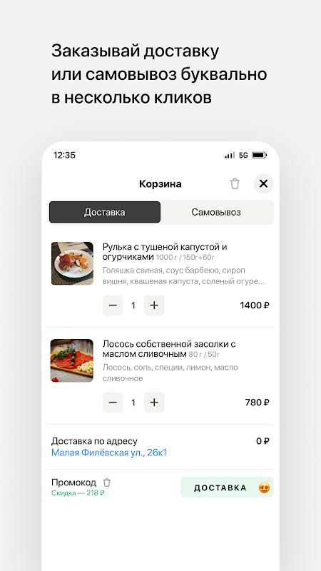 "Usadba" is een app voor het bezorgen van eten in jouw stad!