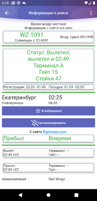 Uitgebreid online scorebord van vertrek/aankomsten van de luchthaven van Koltsovo (Jekaterinenburg) en aanvullende informatie voor vertrek/aankomst/vergadering. Onofficiële app.