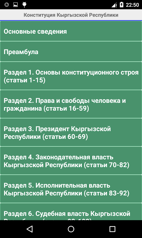 1) De volledige tekst van de grondwet van de Kirgizische Republiek van 28.12.2016g.;