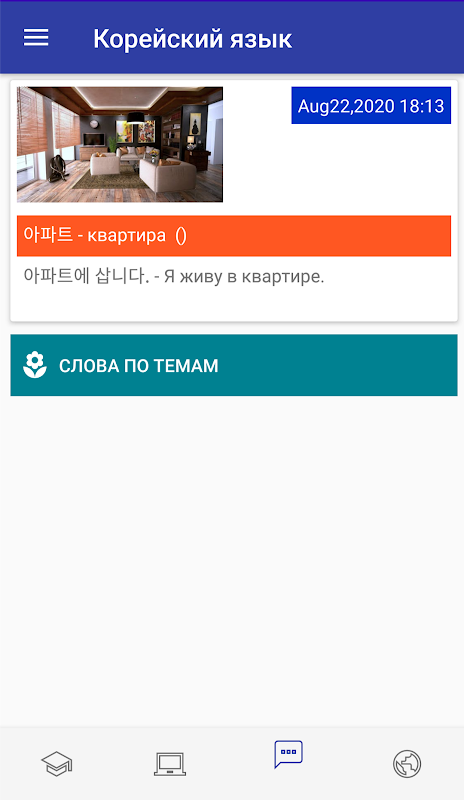 Een ander hoogtepunt van onze applicatie is het woord van de dag. U zult in een speciale sectie elke dag één nieuw woord kunnen leren. Hoeveel dagen - zoveel woorden, uw woordenschat zal geleidelijk worden gevuld.