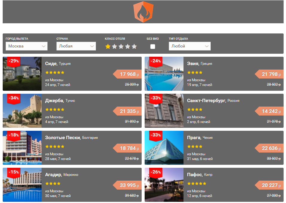 Отдых в Турции, отдых Тайланде, горящие путевки в Испанию, отдых в Греции, туры в Гоа (Индия), Прагу (Чехию), отдых на Кипре, туры в Италию, туры в Венгрию, туры в Австрию, отдых в ОАЭ (Эмираты), туры на Бали (Индонезия), горящие туры во Вьетнам, туры в Андорру, Израиль, турпутевки в Крым. Туры по России, Мальдивы, Сейшелы, Маврикий, Кубу, Доминикану, Кению, Францию, Тунис, Марокко, Мексику и многие другие.