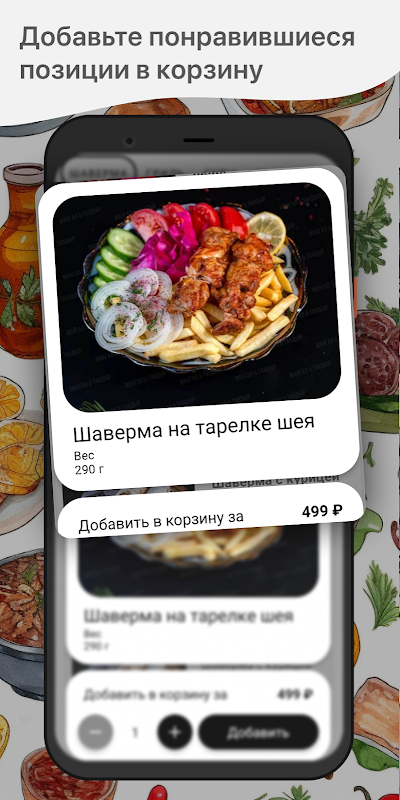 Hoe u een bestelling plaatst in de applicatie “Mangal en Tandoor”: selecteer de artikelen die u leuk vindt in het menu, voeg ze toe aan de winkelwagen en ga naar het bestelscherm (door op het winkelwagenpictogram te klikken).