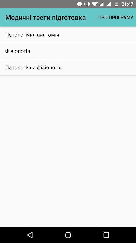 Ця програма створена для зручної та швидкої підготовки студентів до практичних занять та складання ПМК з фізіології, патофізіології та патологічної анатомії, а також для швидкого пошуку відповіді на питання у базі по ключовим словам на тести формату КРОК